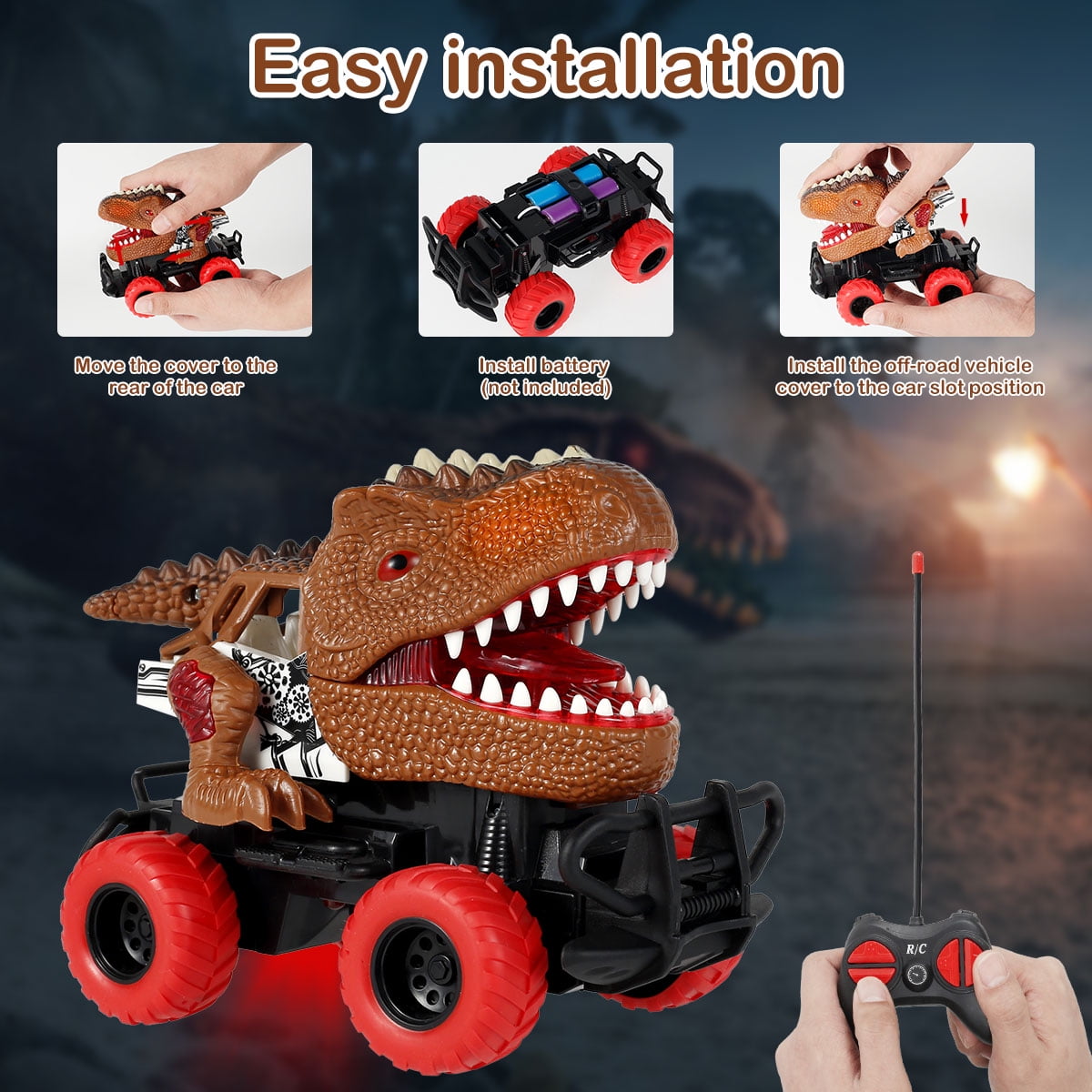 Gotydi 4 Channel Track Rc Dinosaur Car 1 43 Rc Dinosaur Truck Remote Control Dinosaur Car Toy With Led Lights Educational Toy For 3 12 Years Old Kids Walmart Com